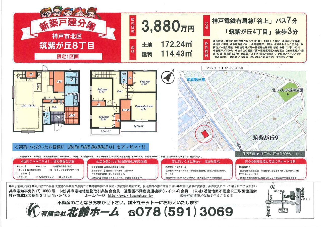 鈴蘭台北町7丁目新築一戸建 ¥3180万円(税込)