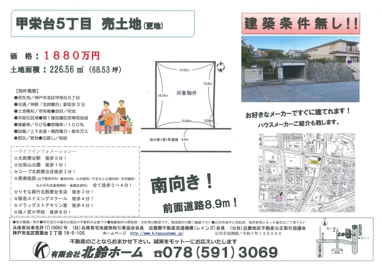 南向き・226.56㎡(68.53坪)・北鈴蘭台駅徒歩3分!