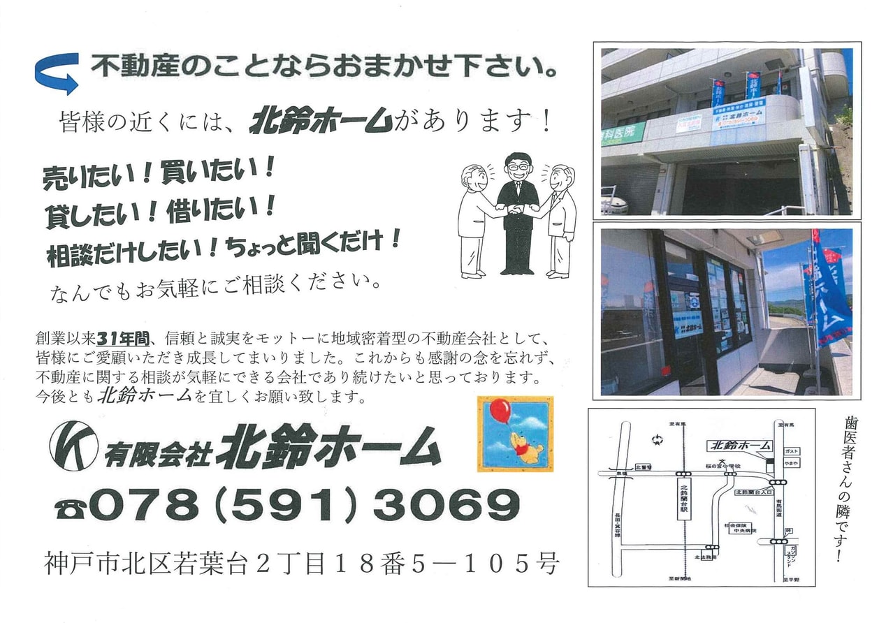 創業31年の神戸市北区にある不動産会社、北鈴ホームは、地域密着型の不動産会社として皆様に愛されてきました。